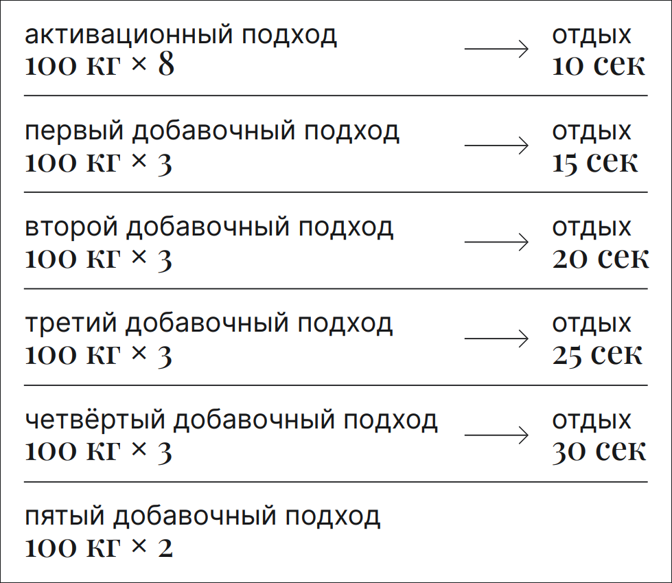 Ещё один способ сократить время тренировки — мио-сеты, где один активационный подход и несколько добавочных